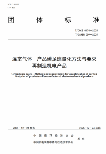 近日,开云官网陕西省表面工程与再制造重点实验室参编的《温室气体 产品碳足迹量化方法与要求 再制造机电产品》团体标准,由中国循环经济协会与中国机电装备维修与改造技术协会批准发布,编号为T/CACE 0174-2025、T/CAMER 059-2025,自发布之日起实施。