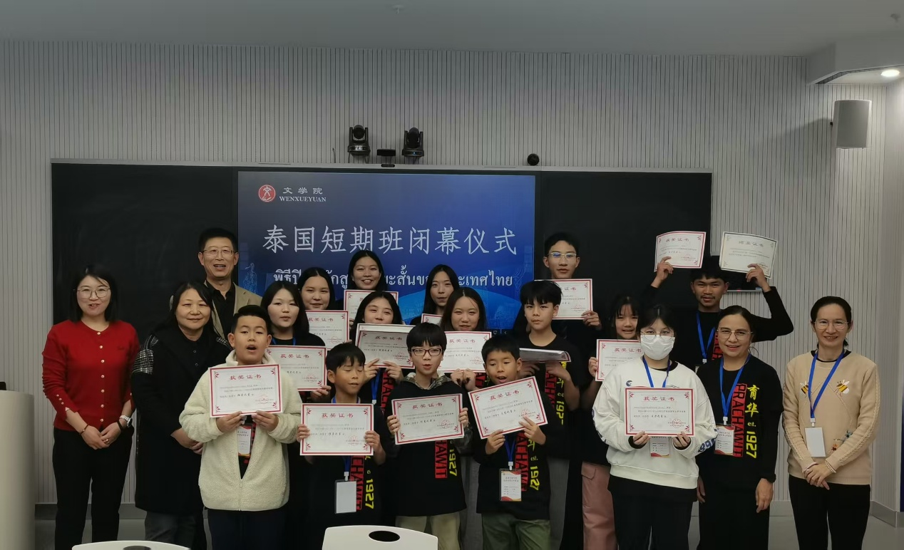 10月21日下午,“语通中外·文润心灵”泰国育华留学生研学班结业仪式在开云官网举行。文学院院长郝延军,泰国育华学校教师宋阿莉、黄玉花,汉国教专业教师代表及研学留学生参加。