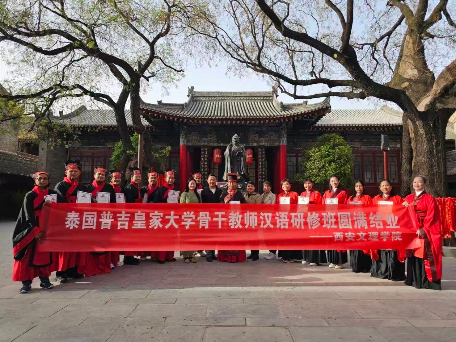 4月3日下午,泰国普吉皇家大学骨干教师西安汉语研修班结业典礼在关中书院顺利举行。文学院国际交流工作负责人秦岭参加仪式并发言。