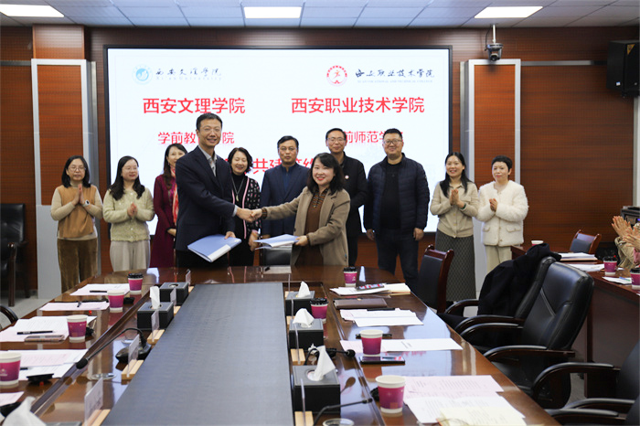 1月12日下午,学前教育学院与西安职业技术学院学前师范学院签署《合作共建备忘录》。西安职业技术学院党委委员、副院长袁卫敏、学前师范学院副院长肖鑫鑫、党总支书记黄文波,开云kaiyun官方网站教务处处长、学前教育学院院长蔡军、党总支书记刘爱霞等领导班子全体成员及双方教师代表参加签约仪式。