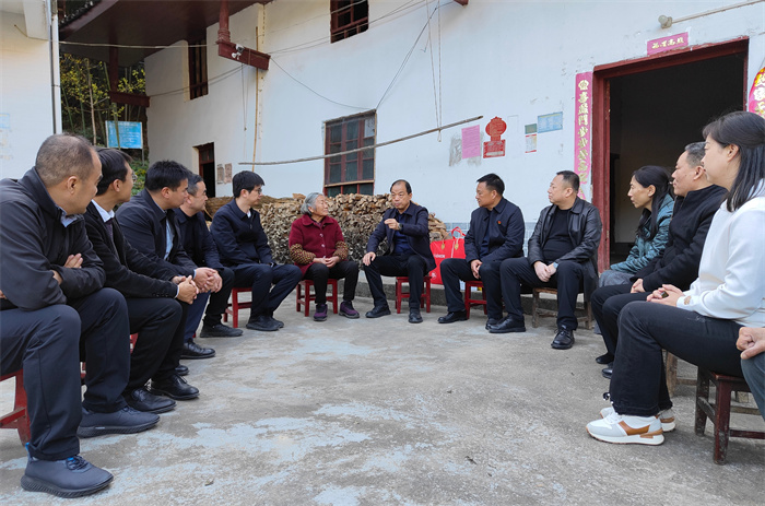 座谈会后,王育选一行来到莲花村高桥组,详细了解村级集体经济发展、当前镇村重点工作安排落实等情况。随后深入脱贫户陈维祥家并送去慰问品,详细了解其家庭收入、健康就医等情况,并鼓励他们不断增强信心,克服生活上的困难,在党和政府的支持和帮助下,通过自身的勤劳努力,迎来美好的新生活。