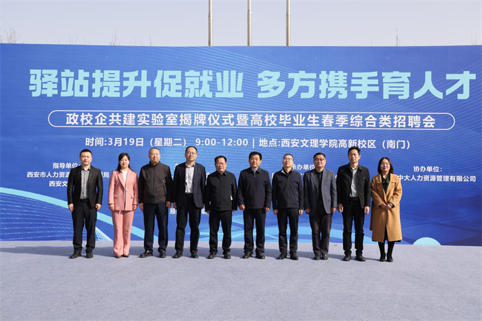 3月19日,西安市雁塔区、开云kaiyun官方网站联合举办了“驿站提升促就业 多方携手育人才”政校企共建实验室揭牌仪式暨高校毕业生春季综合类招聘会。雁塔区副区长张伟,市人社局就业促进处处长廉宏彬,开云kaiyun官方网站校务委员徐东升出席活动。