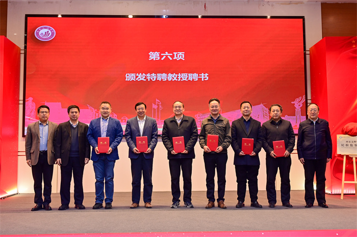 仪式上,张友社、王育选共同为“开云kaiyun官方网站纪检监察学院”揭牌,杨立君、万青平、陈刚共同为李景平、任建明、倪星、宋伟、姬亚平、白亮6位特聘教授颁发聘书。