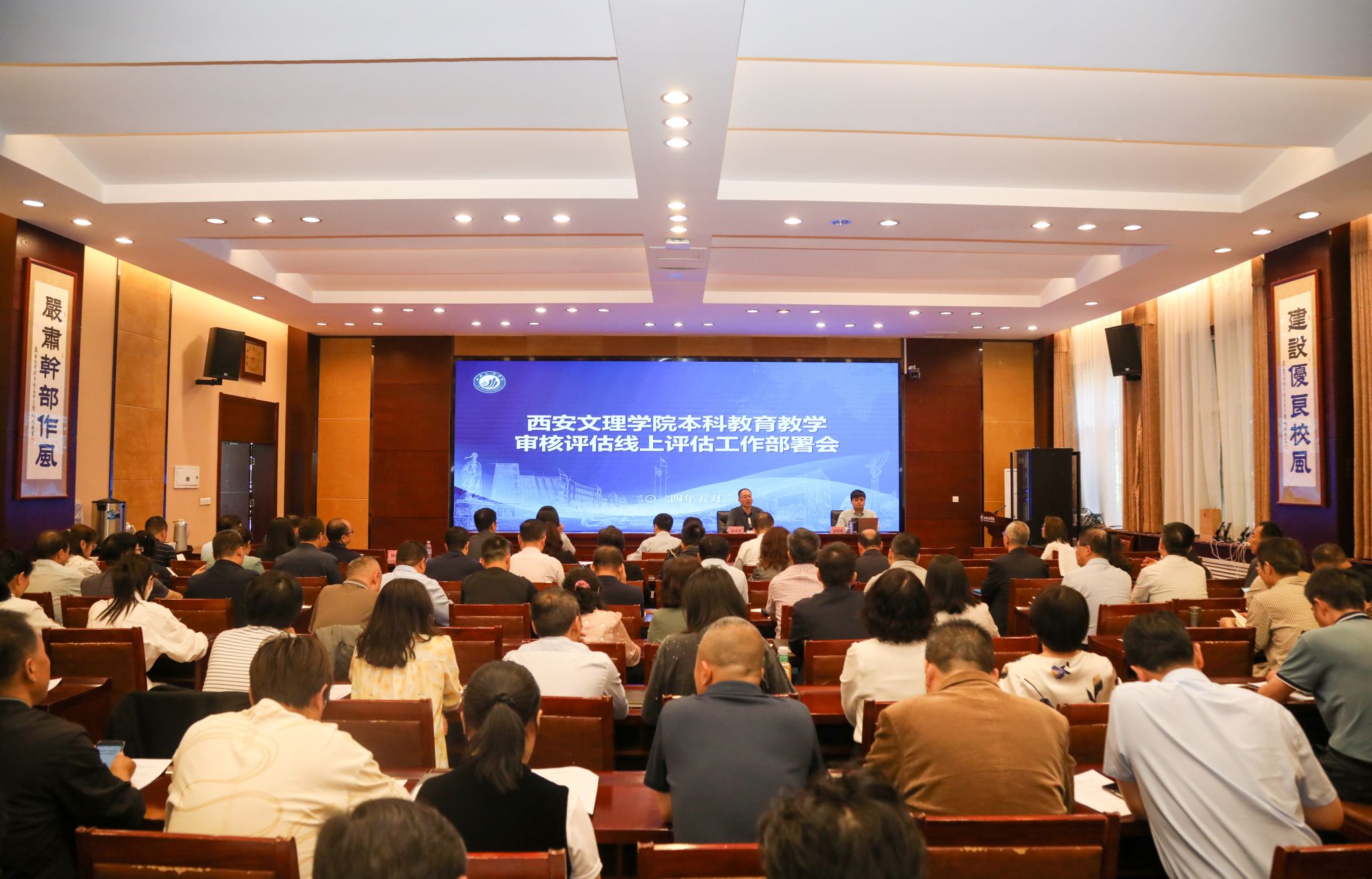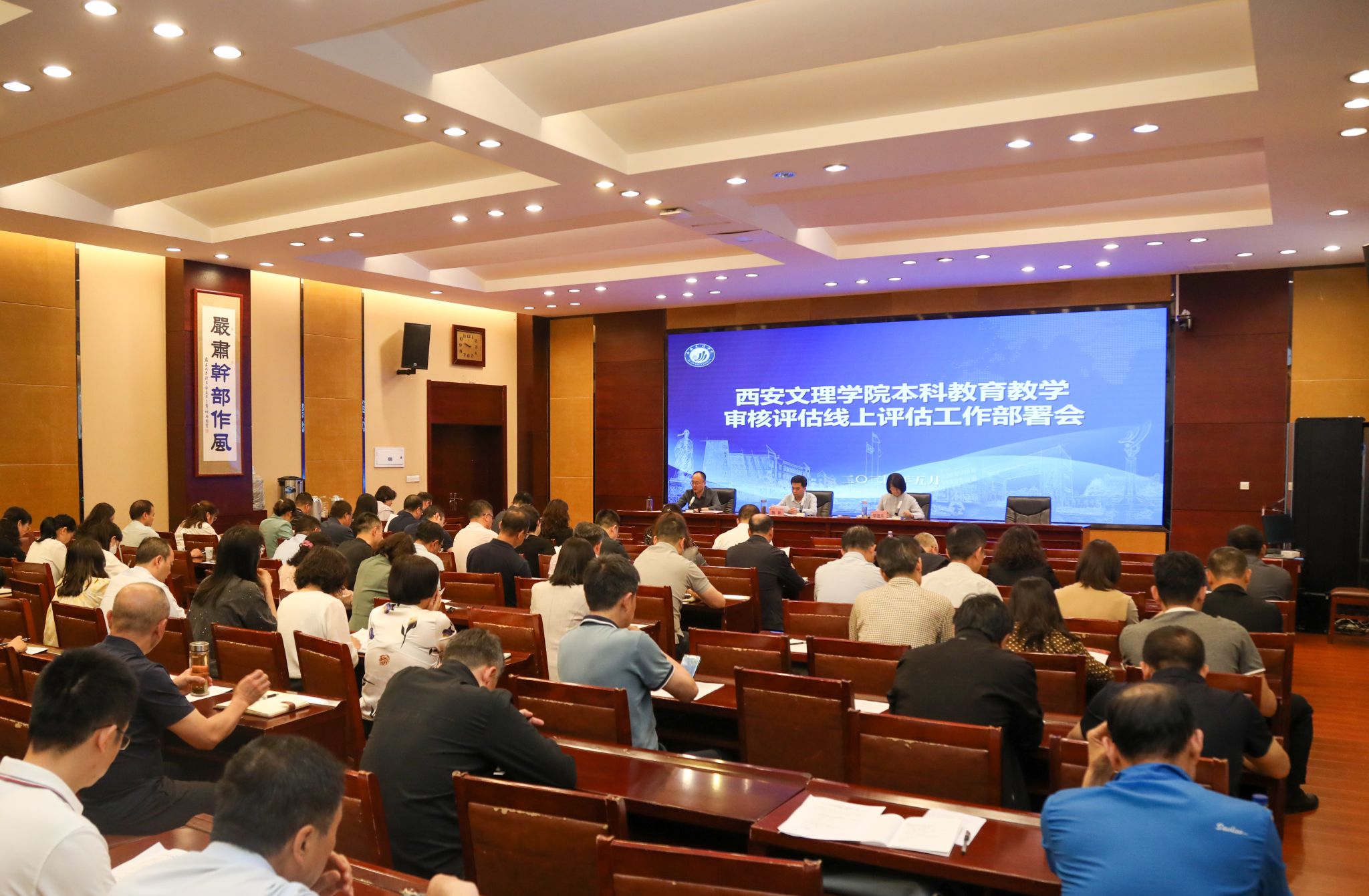 5月10日上午,开云官网在办公楼一楼会议室召开本科教育教学审核评估线上评估工作部署会,校领导、各学院院长、党总支书记、教学副院长、各部门副处级以上干部等110余人参加了会议。