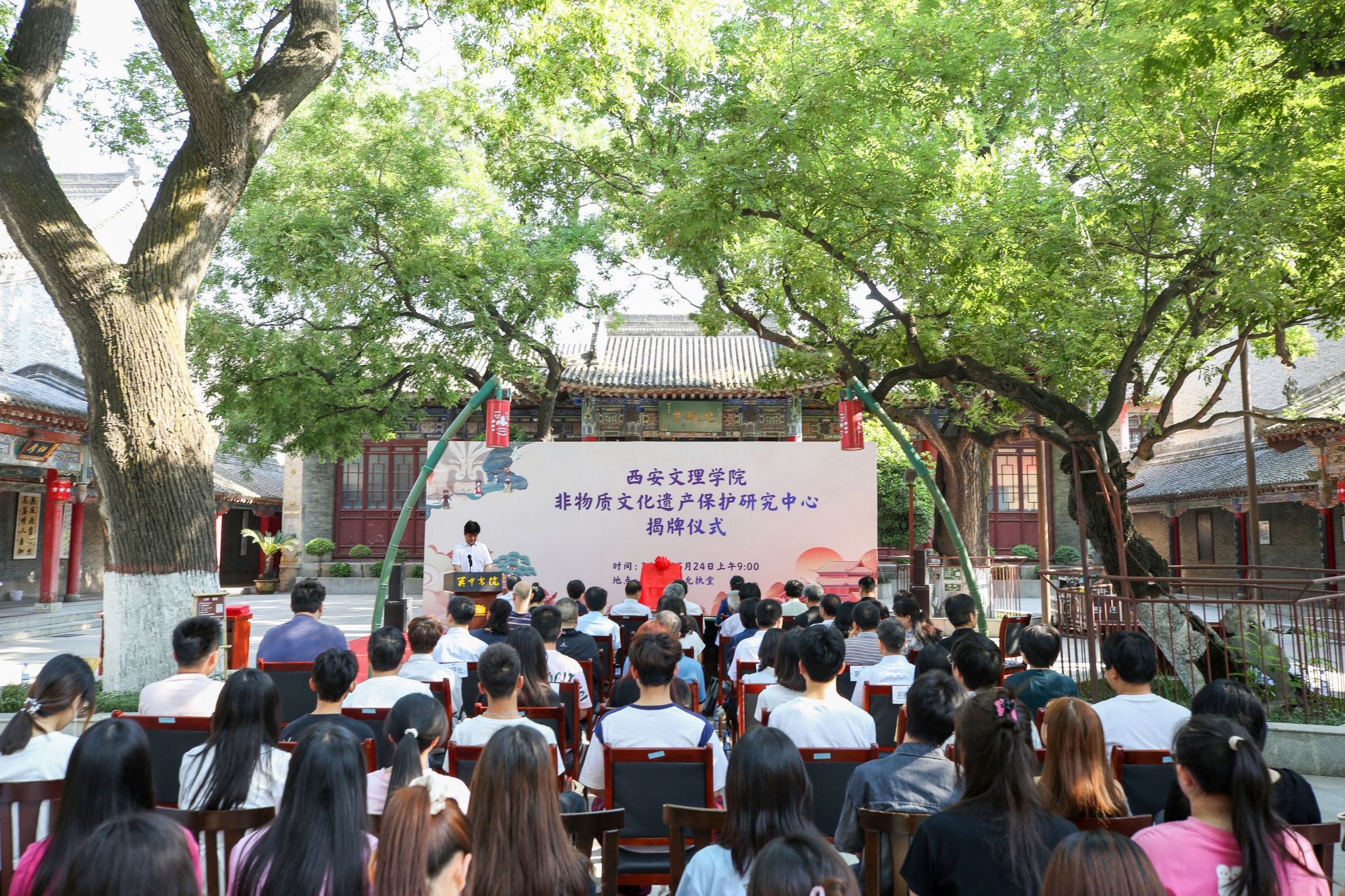5月24日上午,开云kaiyun官方网站非物质文化遗产保护研究中心在关中书院举行揭牌仪式。陕西省文化和旅游厅厅长高阳、校党委书记王育选、碑林区委书记张帆等出席仪式。
