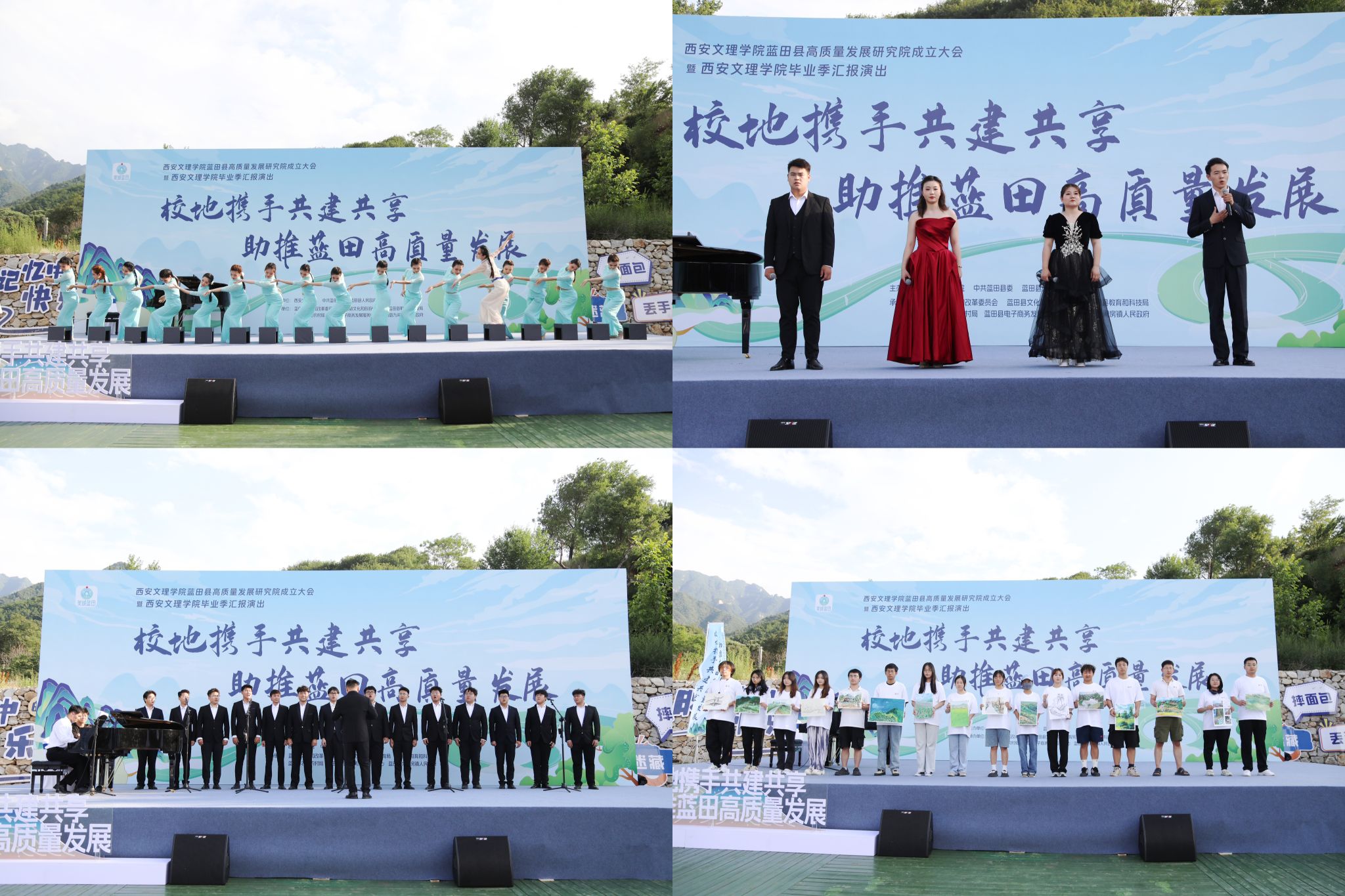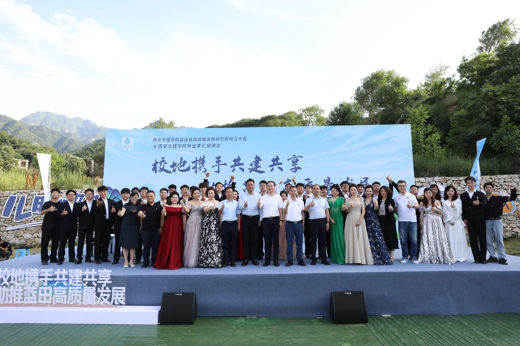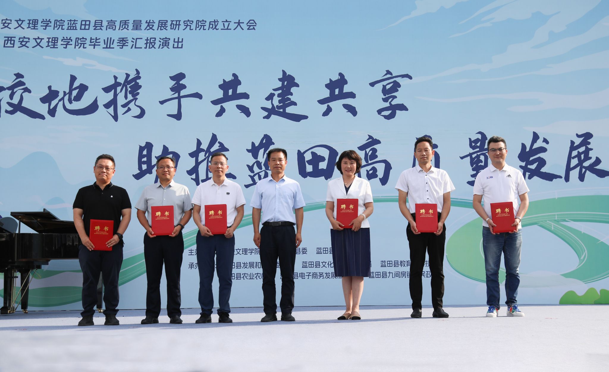 6月19日,开云kaiyun官方网站蓝田县高质量发展研究院成立大会暨开云官网毕业季汇报演出在蓝田县九间房镇峪口村荞麦岭举行。校党委委员、校务委员鲍锋,蓝田县委常委、副县长苏护强致辞,并为“开云kaiyun官方网站蓝田县高质量发展研究院”揭牌。蓝田县副县长李永波向受聘的6位专家颁发聘书,陕西省社科院副院长王建康作为专家代表做了表态发言。