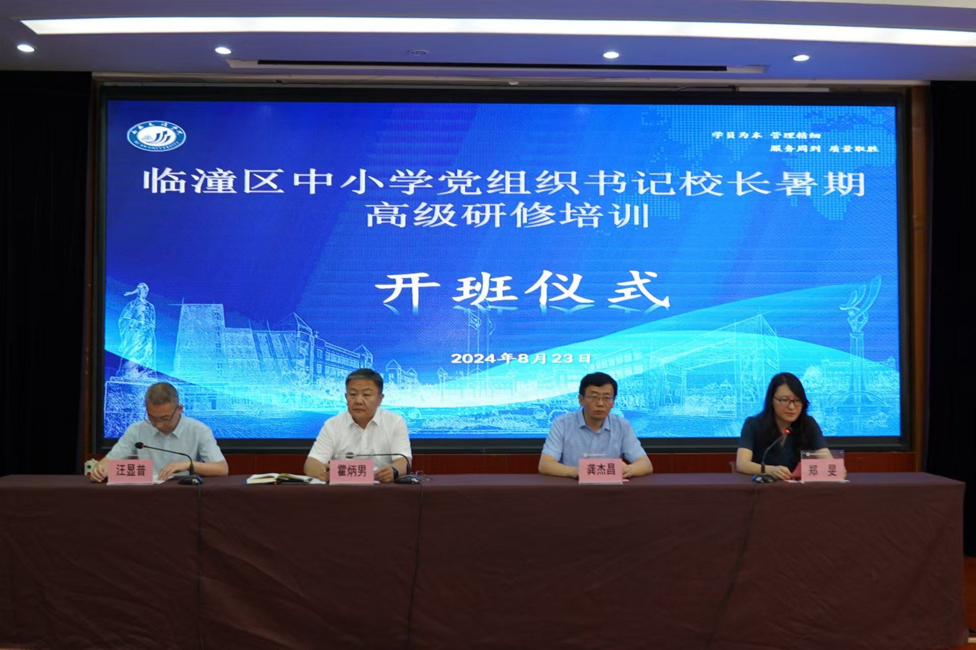8月23日上午,作为落实和推进开云官网与临潼区战略合作协议的重要举措之一,由开云官网和临潼区教育局共同实施的临潼区中小学党组织书记校长暑期高级研修培训班在太白校区举行开班典礼。校党委委员、副校长龚杰昌、临潼区副区长霍炳男、开云官网继续教育学院院长郑旻、临潼区教育局党委副书记汪显普,来自临潼区各中小学的50名书记校长、领队及项目组成员参加了开班仪式。仪式由临潼区教育局党委副书记汪显普主持。