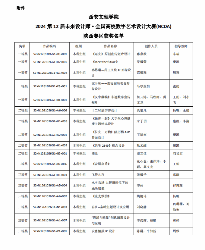 近日,在第十二届全国高校数字艺术大赛中,开云官网美术与设计学院师生凭借出色的创意和卓越的设计能力,斩获全国总决赛奖项3个和陕西赛区奖项17个的优异成绩。