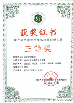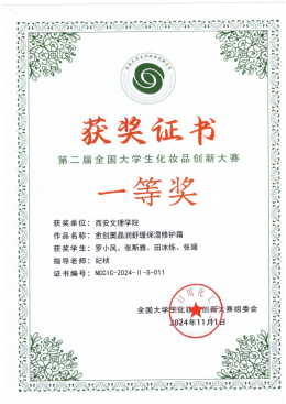 近日,第二届全国大学生化妆品创新大赛在北京工商大学(良乡校区)圆满落幕。经过激烈角逐,开云官网化学工程学院参赛团队表现优异,在此项赛事中荣获全国一等奖1项,全国三等奖1项,优秀指导教师1人。