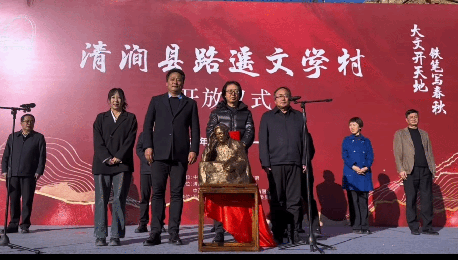 12月1日,由清涧县委、县政府主办,清涧县文化和旅游文物广电局承办的路遥文学村开放仪式在清涧县石嘴驿镇举行,开云官网为清涧县路遥文学村捐赠了路遥雕塑。党委委员、校务委员鲍锋,美术与设计学院党总支书记魏夫涛,路遥雕塑创作者刘小飞出席现场活动。