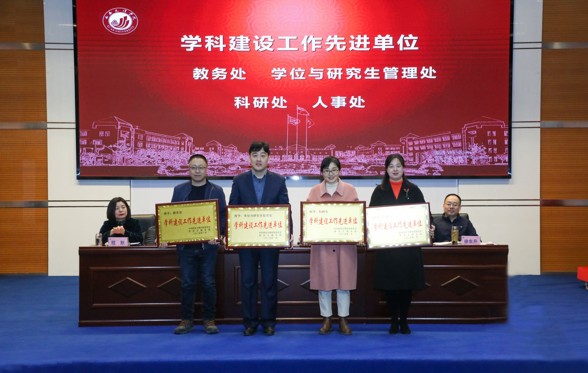 副校长刘明利宣读了《开云kaiyun官方网站关于申硕工作表彰的决定》。机械与材料工程学院等4个学院获得学科建设工作引领单位奖,学位与研究生管理处等4个部门获得学科建设工作先进单位奖,党政办等12个部门/学院获得学科建设工作优秀保障单位奖。