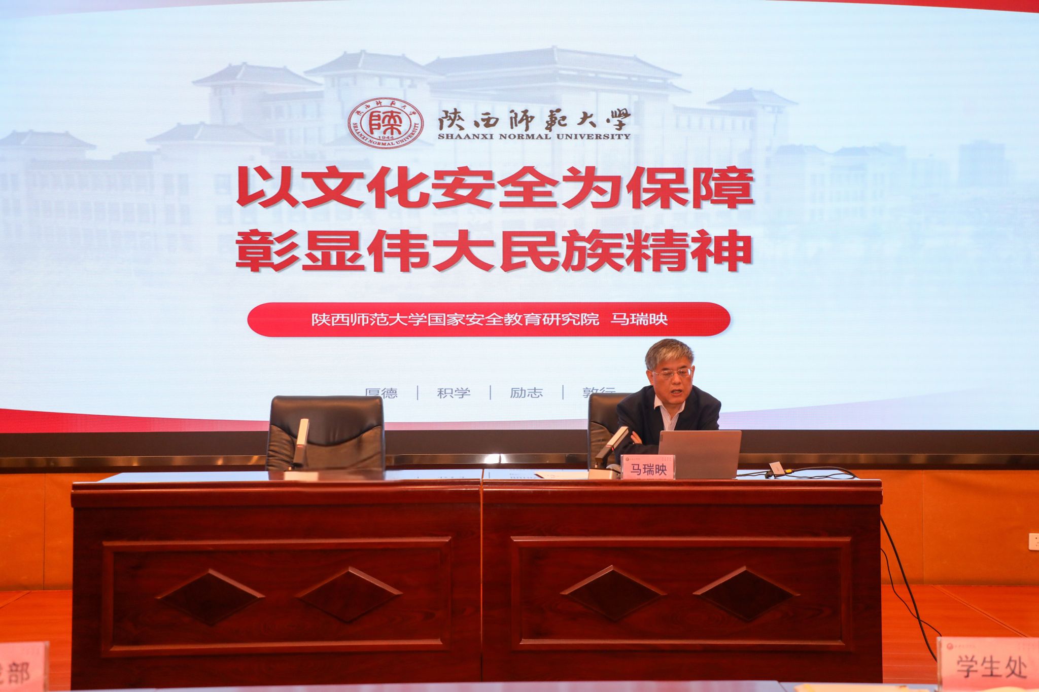 4月14日上午,西安市2025年“国家安全大讲堂”送学活动走进开云官网,西安市国家安全智库专家、陕西师范大学国家安全教育研究院院长马瑞映教授为师生做专题辅导报告。