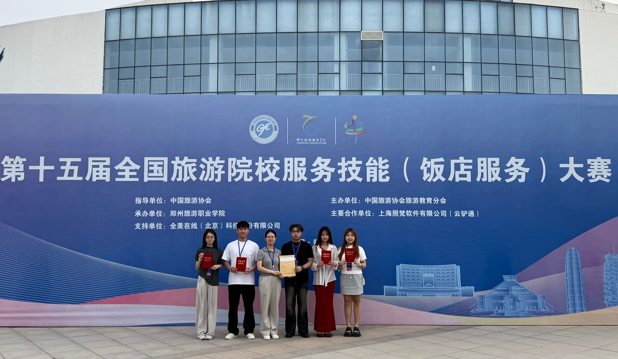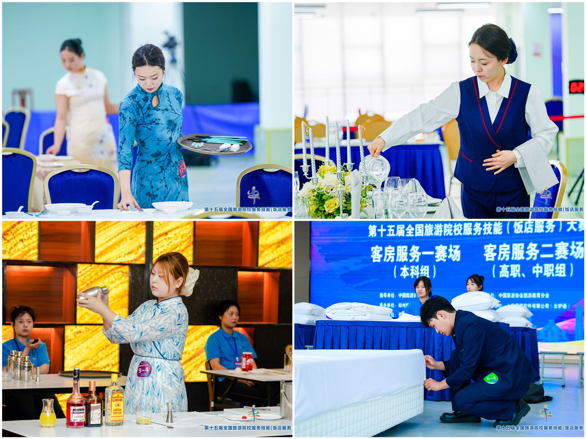 5月14日至18日,中国旅游协会旅游教育分会在郑州举办第十五届全国旅游院校服务技能(饭店服务)大赛。本次大赛共有来自全国28个省、自治区、直辖市的185所院校参赛队的596名选手报名参赛。历史文化旅游学院旅游管理2201班张丁珧、任婧菲、陈新月、李家豪4位同学分别获得中餐宴会摆台二等奖、西餐宴会摆台三等奖、鸡尾酒调制优胜奖、客房服务优胜奖。