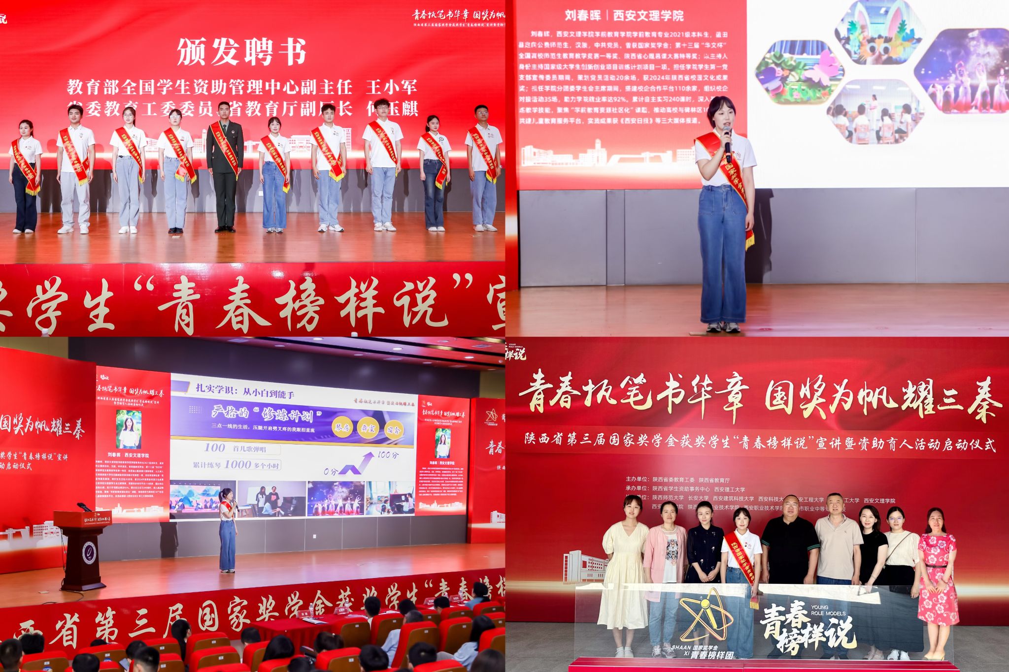 10位宣讲团成员紧扣“青春执笔书华章 国奖为帆耀三秦”主题,结合自身求学成长经历,生动讲述了在国家资助政策的帮扶下,向阳成长、励志奋进的故事,激励广大青年学子树立远大志向,追逐人生梦想,努力成长为能够担当民族复兴大任的时代新人。