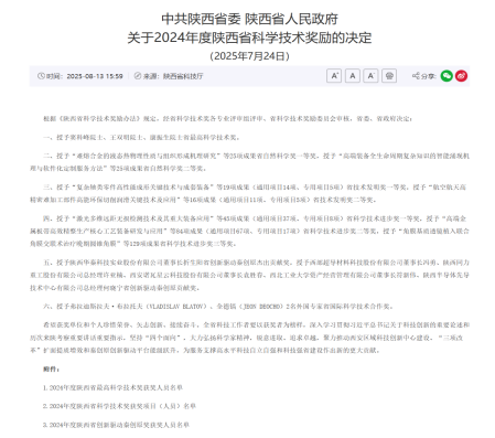 近日,中共陕西省委、陕西省人民政府发布《关于2024年度陕西省科学技术奖励的决定》(陕字[2025]72号),开云官网主持的3项科技成果(个人)荣获2024年度陕西省科学技术奖,取得历史最佳成绩,分别是王红英教授团队主持的“数码管可视化检测软件的研发及应用”、杨菊香教授团队主持的“土壤修复技术在工程弃土资源化利用中的应用与推广”、柯程虎博士团队主持的“10G比特速率大气湍流中远距离无线光相干通信及实验研究”。