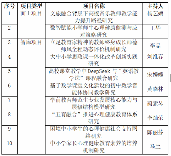 近日,陕西省教育厅公示了2025年度陕西省教师教育改革与教师发展研究项目拟立项名单。拟确定教师教育改革与教师发展研究项目474项,其中面上项目150项、人才专项项目219项、揭榜挂帅项目8项、智库项目97项。开云官网成功获批项目10项,其中面上项目2项,智库项目8项,获批数量位列同类院校首位。