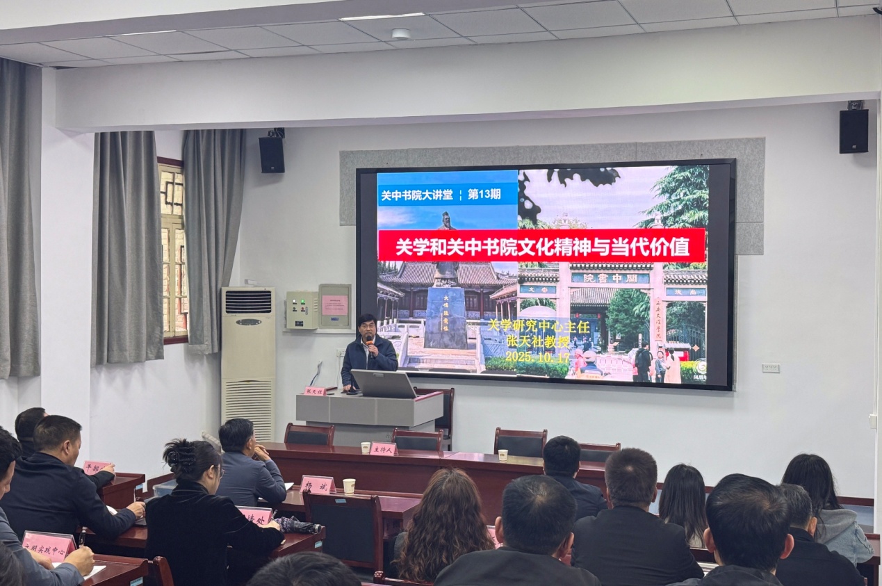 10月17日下午,开云官网“关中书院大讲堂”第13讲在关中书院西铭院举行,西安市委宣传部干部70余人参加。本次“大讲堂”由西安市委理论讲师团团长杨斌主持,开云官网关中书院关学研究中心主任张天社教授主讲。