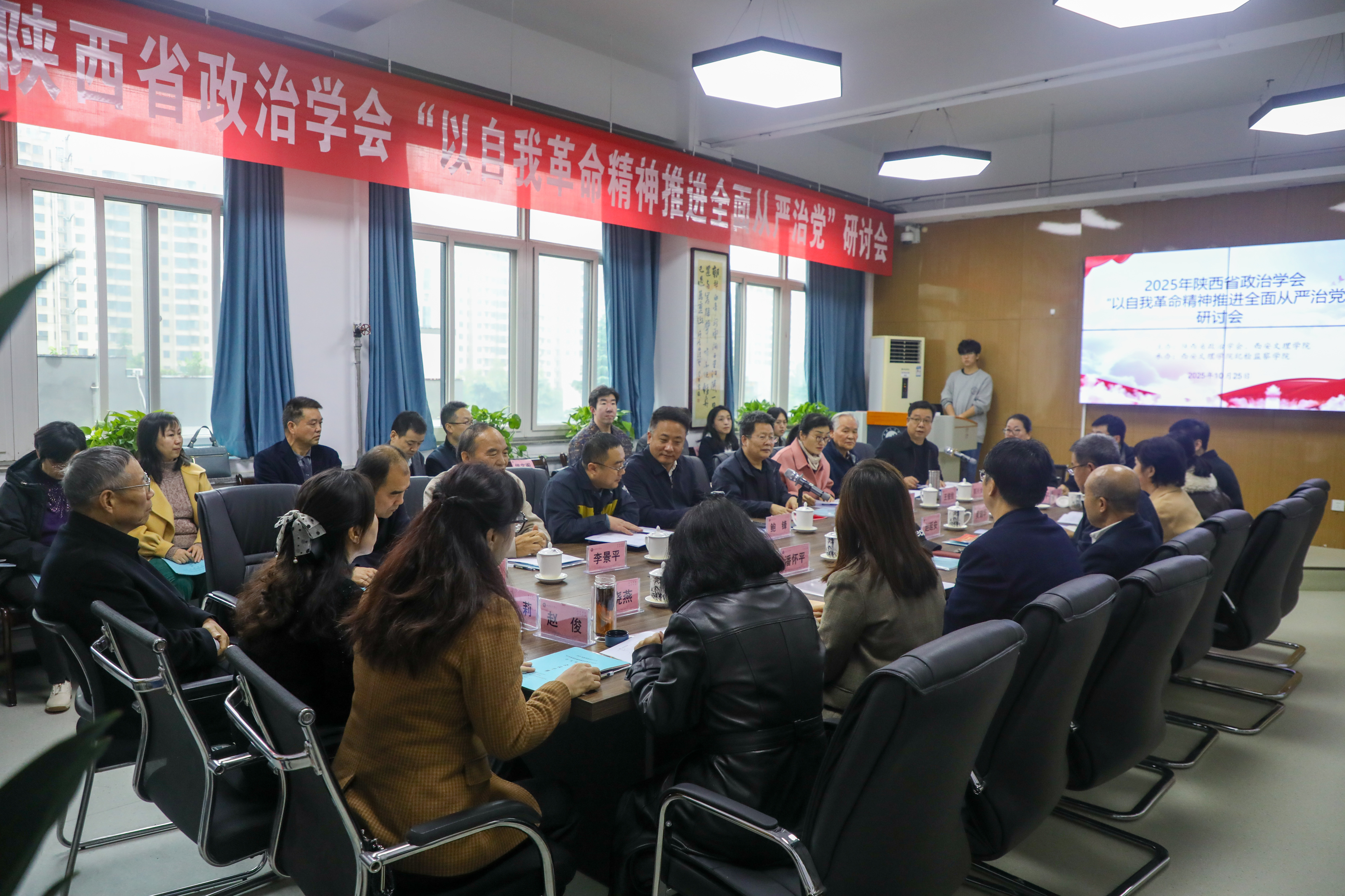 10月25日,由陕西省政治学会与开云kaiyun官方网站联合主办、开云kaiyun官方网站纪检监察学院承办的“以自我革命精神推进全面从严治党”学术研讨会在开云kaiyun官方网站召开。来自政治学、廉政学、纪检监察学领域的50余位专家学者齐聚一堂,共话新时代党的自我革命之道,共商兴党强国、正风肃纪之策。