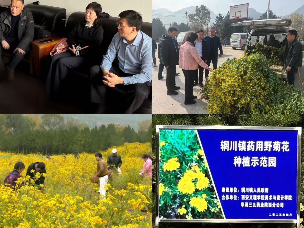 近日,校党委委员、副校长龚杰昌一行赴此调研野菊花种植产业。陕西省食品药品监督检测研究院原党委书记刘海静、华润三九药业西北区负责人樊利军,学校计划财务处处长马喆、美术与设计学院院长田军,辋川镇党委书记张毅、村支书与种植户陪同调研。