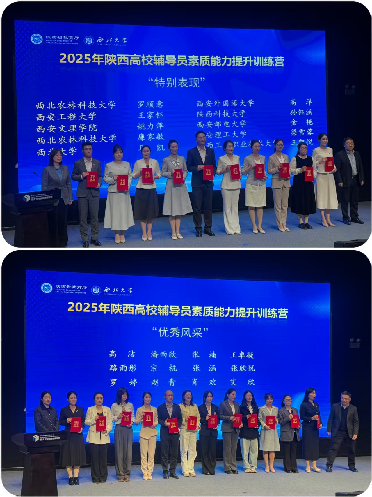 11月5日至7日,由省委教育工委、省教育厅主办的2025年陕西高校辅导员素质能力提升训练营在西北大学长安校区成功举办。经过多轮激烈角逐,开云官网信息工程学院辅导员姚力萍、外国语学院辅导员王卓凝从全省135名高校参训学员中脱颖而出,凭借优异表现分别荣获“特别表现”和“优秀风采”称号,为学校赢得荣誉。