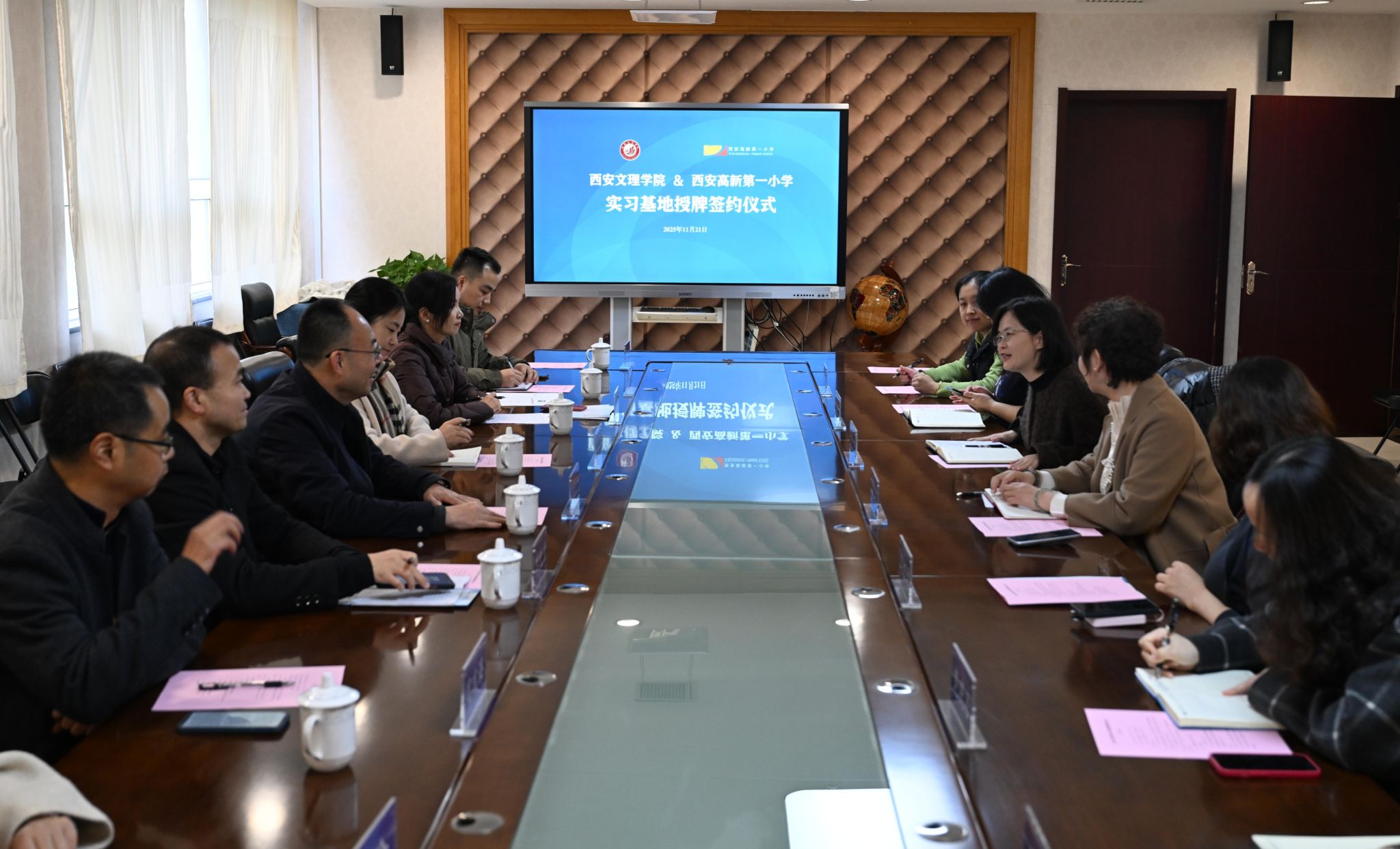 11月21日,校务委员徐东升率招就处、师范学院负责人及教师代表赴西安高新区第一小学,成功开展访企拓岗活动并举行实习基地签约挂牌仪式。