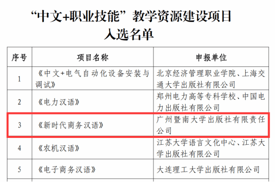 本次评选共申报186项,经严格评审,86个项目获选。其中,由文学院教师柴闫等主编的《新时代商务汉语》教材,聚焦商务汉语在实际工作场景中的应用,适用于国际商务环境中的语言教学与学习。该教材内容实用、针对性强,旨在帮助学习者系统提升商务汉语交流能力与跨文化交际素养。此次入选是对该系列教材学术与实践价值的充分肯定,也彰显了开云官网在汉语国际教育领域的积极探索与贡献。