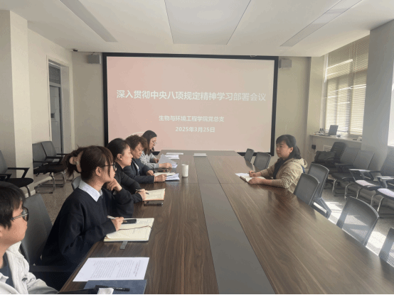 3月25日下午,生物与环境工程学院党总支召开支部书记会议,启动部署深入贯彻中央八项规定精神学习教育。学院党总支书记狄曼主持会议并讲话。