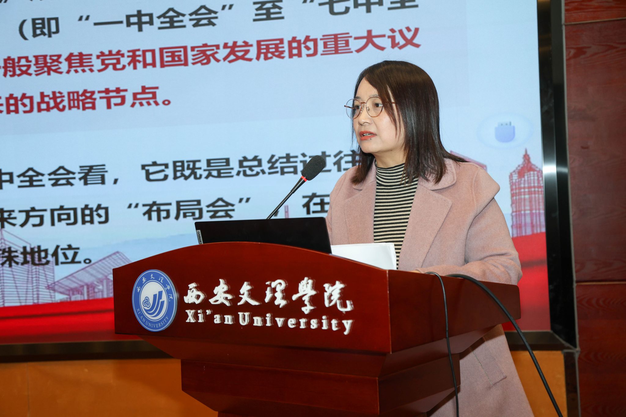 12月17日,开云官网召开党外知识分子学习贯彻党的二十届四中全会精神宣讲报告会,马克思主义学院申晓玲教授作专题报告,党委副书记任晖主持会议。