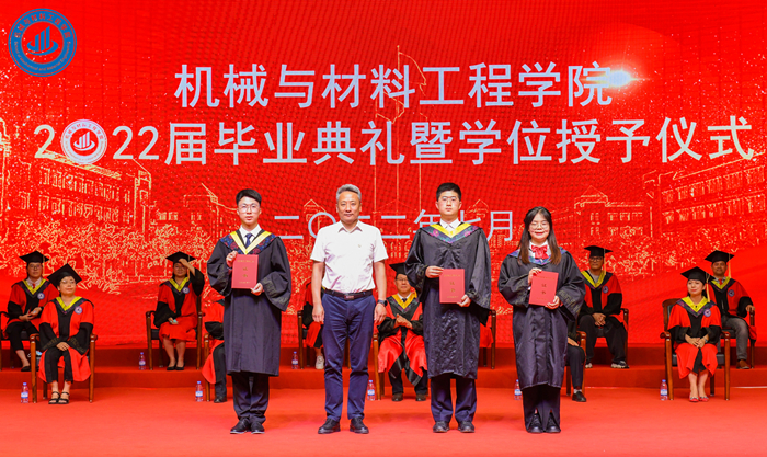 7月3日下午,机械与材料工程学院在学校大礼堂举行2022届毕业典礼暨学位授予仪式。校党委委员鲍锋,学位与研究生管理处处长韦炜,学生工作处处长郑旻,团委书记魏夫涛,招生就业处处长杨姗姗,大学生创新创业教育中心...
