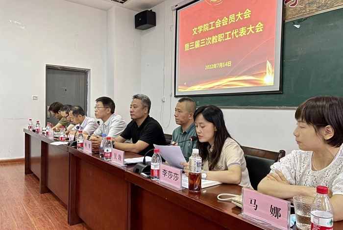 7月14日下午,文学院在学院会议室召开工会会员大会暨三届三次教职工代表大会,校党委委员、宣传部部长鲍锋,文学院全体领导班子成员及全体教职工参加会议,会议由党总支副书记李莎莎主持。 大会在庄严的国歌声中拉开...