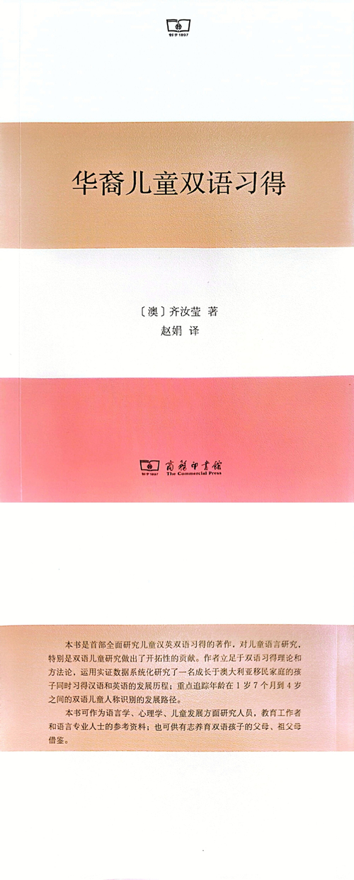 近日,开云官网外国语学院赵娟副教授的译作《华裔儿童双语习得》(2022年)由商务印书馆出版发行。 本书的英文版由美国坎布里亚出版社出版,作者齐汝莹任职于澳大利亚西悉尼大学人文与传播学院,双语研究实验室主任,博士...