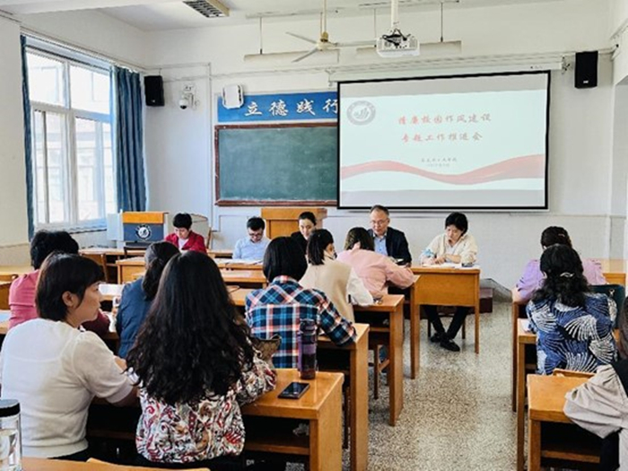9月28日下午,马克思主义学院召开政治理论学习暨清廉校园和作风建设推进会,学院领导班子成员和全体教职工参加会议。学院党总支委员许萌主持会议。 党总支书记张军学传达市委《关于贯彻省委十四届二次全会精神开展作...