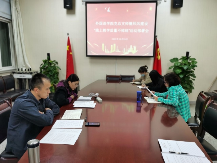 10月25日,外国语学院党总支召开师德师风建设-—“线上教学质量不掉线”活动部署会。院领导班子成员,系部主任、副主任、支部书记、教学秘书、辅导员线上线下同步参会。 会上,党总支书记杨文秀强调了活动开展的重要...