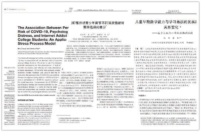 近期,学前教育学院科研团队高水平论文发表捷报频传,学前儿童心理发展研究团队的三篇论文分别被国际国内权威期刊接收发表。 张少华博士及其合作者的论文——《不同抑郁症状青少年调节不同强度情绪时策略选择的差异》...