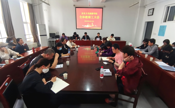 4月12日,历史文化旅游学院召开全院教职工大会,安排部署近期工作。学院领导班子、全院教职工参加,会议由学院党总支书记刘倩倩主持。 院长张天社根据《西安市2023年八个方面重点工作任务分工推进方案》和学校《2023...