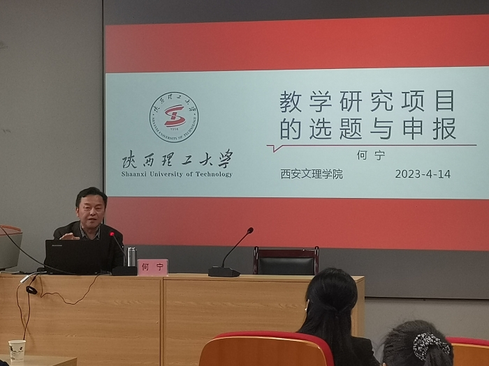 4月14日,师范学院和外国语学院联合举办的“教学研究项目的选题与申报”讲座在明德楼多功能教室召开。 讲座邀请到陕西理工大学原校长,陕西普通高校教学名师何宁教授主讲。师范学院与外国语学院近百余名教师线下线上...