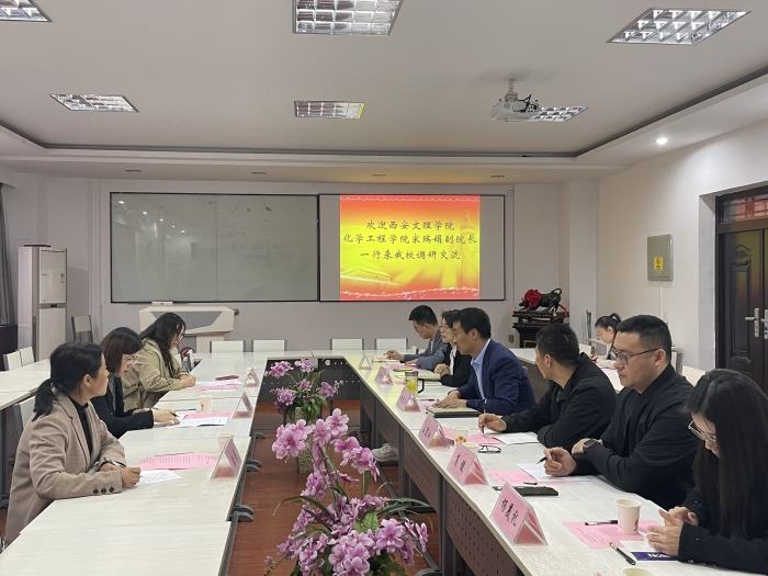 4月14日上午,化学工程学院副院长宋瑞娟带领化学系主任焦宝娟、辅导员张莎一行前往宝鸡文理学院化学化工学院调研交流。宝鸡文理学院化学化工学院院长胡登卫、党委书记兰佳等热情接待了宋瑞娟一行。双方就科研、教学、...
