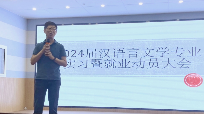 6月15日,文学院召开2024届汉语言文学专业实习暨就业动员大会。院长郝延军,党总支副书记李莎莎,教学副院长苏羽,中国语言文学系主任于展东,实习带队教师以及2024届实习生参加。会议由中国语言文学系副主任李冰清主...