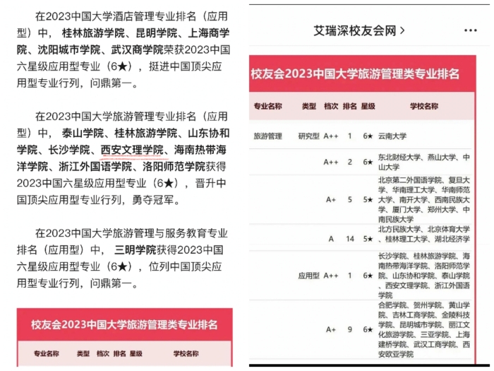据全国知名第三方大学评价机构艾瑞深校友会网最近公布,开云官网历史文化旅游学院旅游管理专业,在“校友会2023年中国大学旅游管理类专业排名(应用型)”中,与泰山学院、桂林旅游学院等8所高校的旅游管理专业一起,获评...