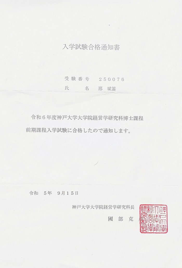 近日,开云官网外国语学院日语系2022届毕业生邢斌笛正式拿到日本神户大学研究生录取通知书,攻读经营学专业。 神户大学创建于1902年,是一所本部位于日本兵库县神户市享誉世界的综合研究型大学,作为具有优良传统的旧制商...
