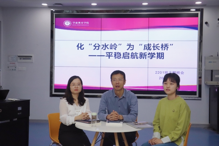 9月20日,学前教育学院在弘文楼H201召开新学期2022级创新实验班新学期第一场主题班会,学前教育学院院长蔡军、副院长路娟、辅导员杜芷歆及2022级创新实验班全体同学参会。 此次班会的主题为“化‘分水岭’为‘成长桥...
