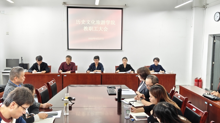 9月27日下午,历史文化旅游学院召开教职工大会。学院领导班子成员、全体教职工参加了会议。会议由党总支书记刘倩倩主持。 刘倩倩宣布了学院领导班子成员、系部主任、办公室人员、博士引进等人事变动情况;副院长裴书...