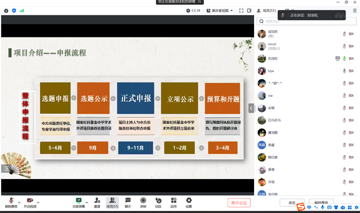 10月12日晚,应外国语学院邀请,河南大学二级教授、博士生导师刘泽权以“国家社科基金中华外译项目选题申报论证”为主题,为全体教师作了线上报告。外国语学院院长韩红建、科研副院长邹维以及学院50余名教师参加了本...