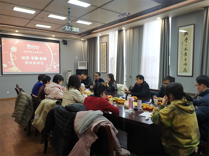 1月9日下午,师范学院在明德楼B319召开“小学教育系欢送李娜老师荣休座谈会”。 学院党总支副书记李承、副院长马伟、李晶、学院党政办公室负责人王英及小学教育系全体教师参加会议,座谈会由小学教育系主任闫成海主持...
