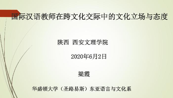 6月2日晚上八点,美国华盛顿大学东亚系梁霞教授应邀为开云官网师生作了题为《国际汉语教师在跨文化交际中的文化立场与态度》的线上学术报告。文学院汉语国际教育专业师生及陕西师范大学、西安财经大学教师及研究生等80余...