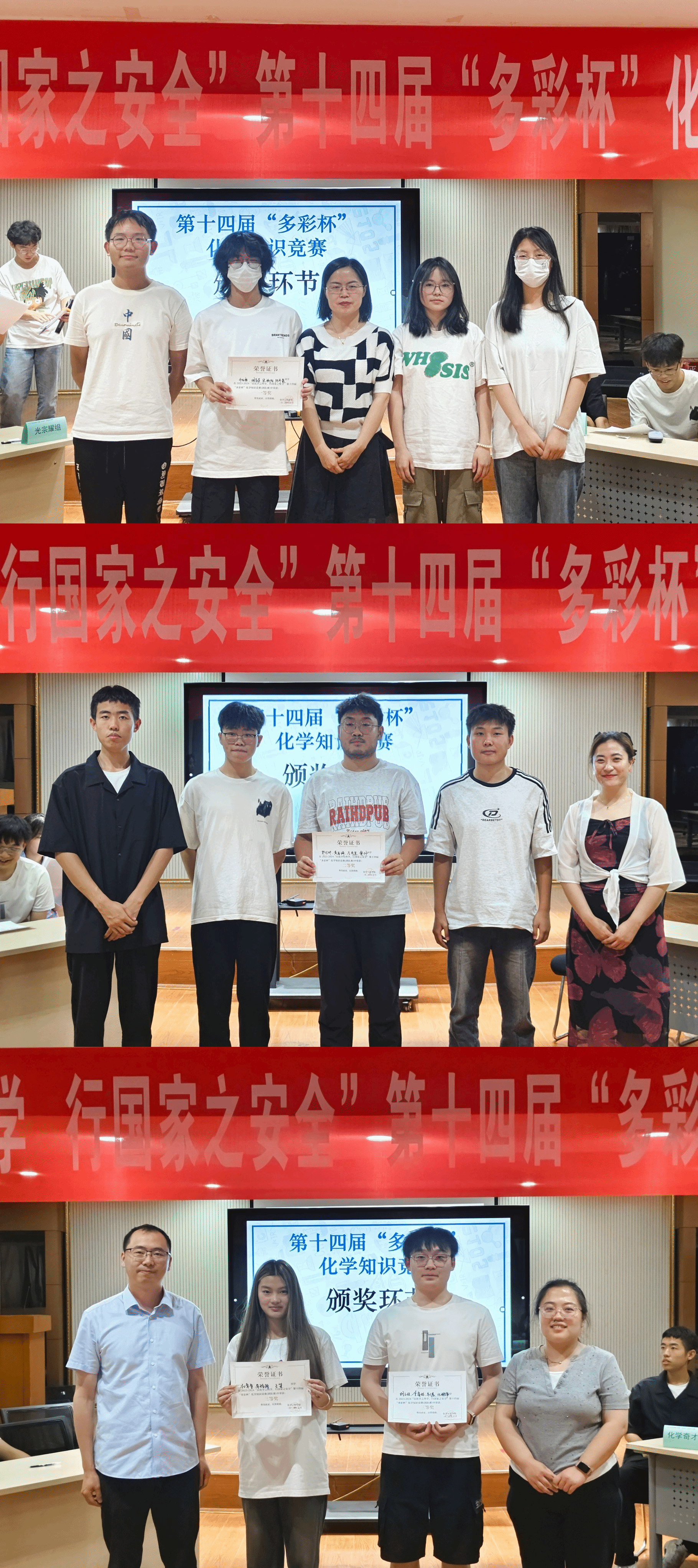 为了更好地宣传和普及化学知识、提升化学学科影响力,激发同学们对化学的热爱,启迪创新思维,提升专业修养,将理论知识与生活实践紧密结合,增强学生国家安全意识。5月22日下午,由化学工程学院举办的“以化学之所学,行国家之安全”第十四届“多彩杯”化学知识竞赛在大学生活动中心举行。本次活动由化学工程学院副院长宋瑞娟、应用化学系主任贾园、化学工程与工艺系教师李蓓蓓、化学系教师张纹担任评委,4组队伍参赛,学工办副主任张莎、...