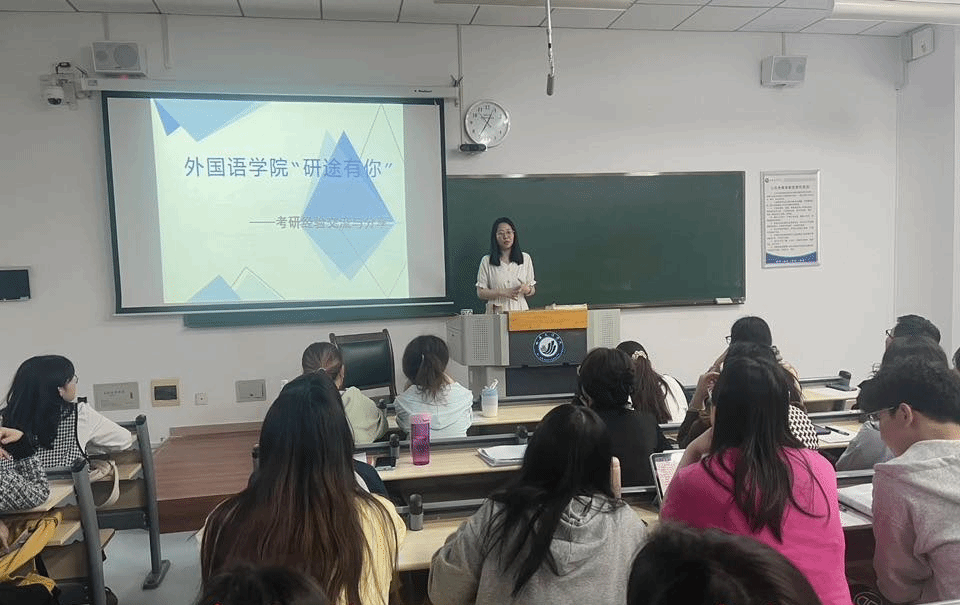 为引导2025届毕业生提前做好考研规划,树立考研信心,明确考研目标,4月以来,外国语学院分专业、分批次陆续开展2024年考研经验交流分享及考研专题讲座。4月17日,外国语学院组织召开英语专业考研经验交流分享会,会议由学工办主任田先利主持,2025届英语专业全体学生参加,党总支副书记李巧玲参会。田先利就本次交流分享会的目的意义做了说明,旨在帮助即将步入大四的同学进一步明确学习目标,提前做好学业规划。成功考取研究生的彭梦媛、...