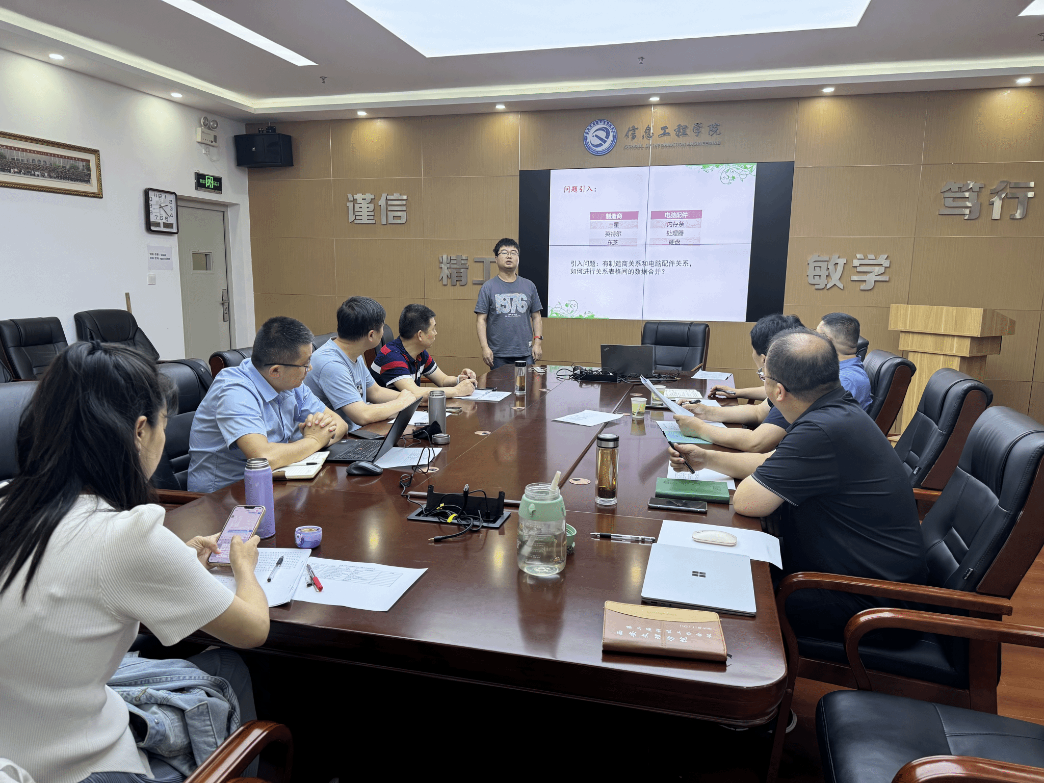 为充分发挥专业教师课程育人的主体作用,大力推动以“课程思政”为目标的课堂教学改革,6月3日下午,信息工程学院开展院级课程思政“大练兵”活动。经各系推荐,邹祥等8名教师参与了此次活动,学院党总支书记王向阳及教学工作委员会全体成员参加会议,会议由教学副院长陈广锋主持。参加活动的8位教师,结合自己的课程特色,分别通过课程导入、举例分析、总结反思等多种方式,在课堂讲解中,融合了课程思政的内容,联系国际形势,宣扬爱国主义精神;...