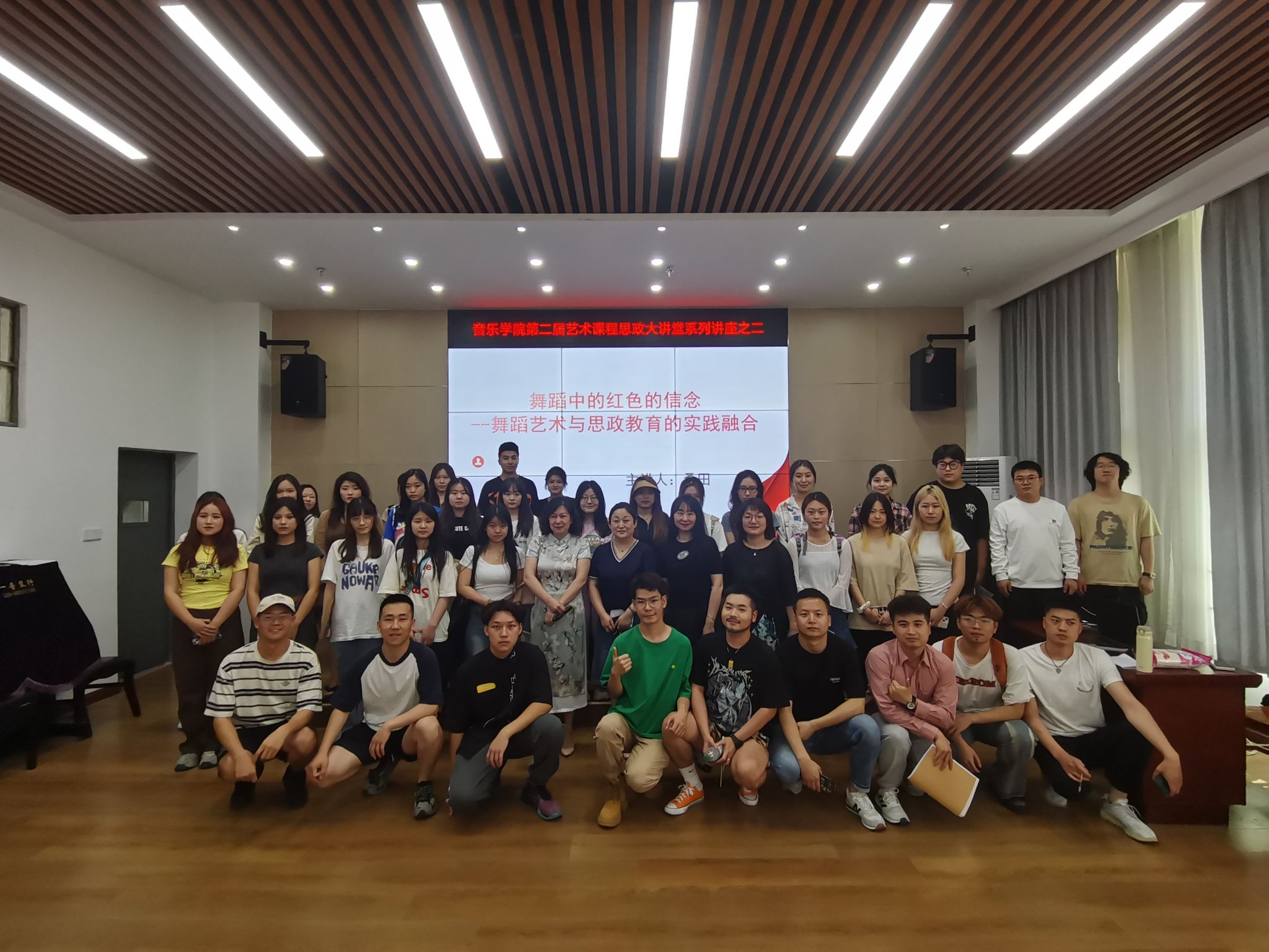 6月5日下午,音乐学院在明德楼C103报告厅举办桑田副教授主讲的第二届课程思政大讲堂系列讲座之二《舞蹈中的红色的信念——舞蹈艺术与思政教育的实践融合》,讲座由党总支委员高婧主持,学院领导、教师代表、学生党员参加讲座。舞蹈不仅是一种艺术形式,更是一种表达情感、传递思想的有效手段。桑田老师结合自身的艺术实践和教学经验,从培养学生良好的组织纪律、培养吃苦耐劳的精神、克服困难挫折的勇气、增加学生团队合作精神以及与人交流的能力、...