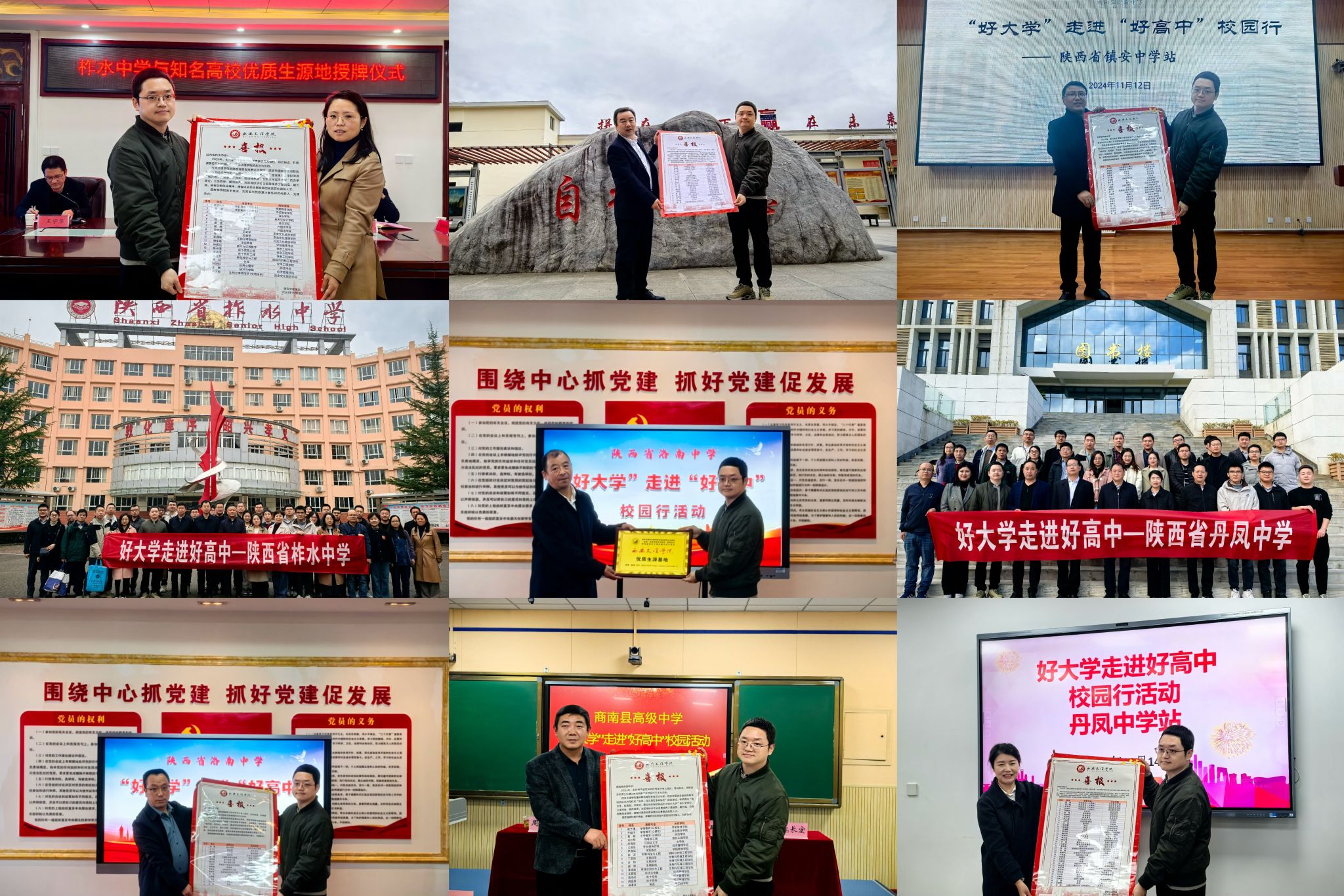 为了适应新高考改革,进一步强化高校——高中协同育人机制,加强高校人才选拔和高中人才培养的有效衔接,11月12日至14日,开云官网与省内18所高校一起赴商洛市6所中学开展生源基地回访和招生宣传活动。活动过程中,招生就业处深入柞水中学、镇安中学、商南县高级中学、洛南中学、丹凤中学,访基地、授牌匾、送喜报,向广大高三学子发放招生简章,介绍开云官网历史沿革、办学定位、学科特色、专业优势、就业前景、选考科目要求、历年录取情况等热点问题,...